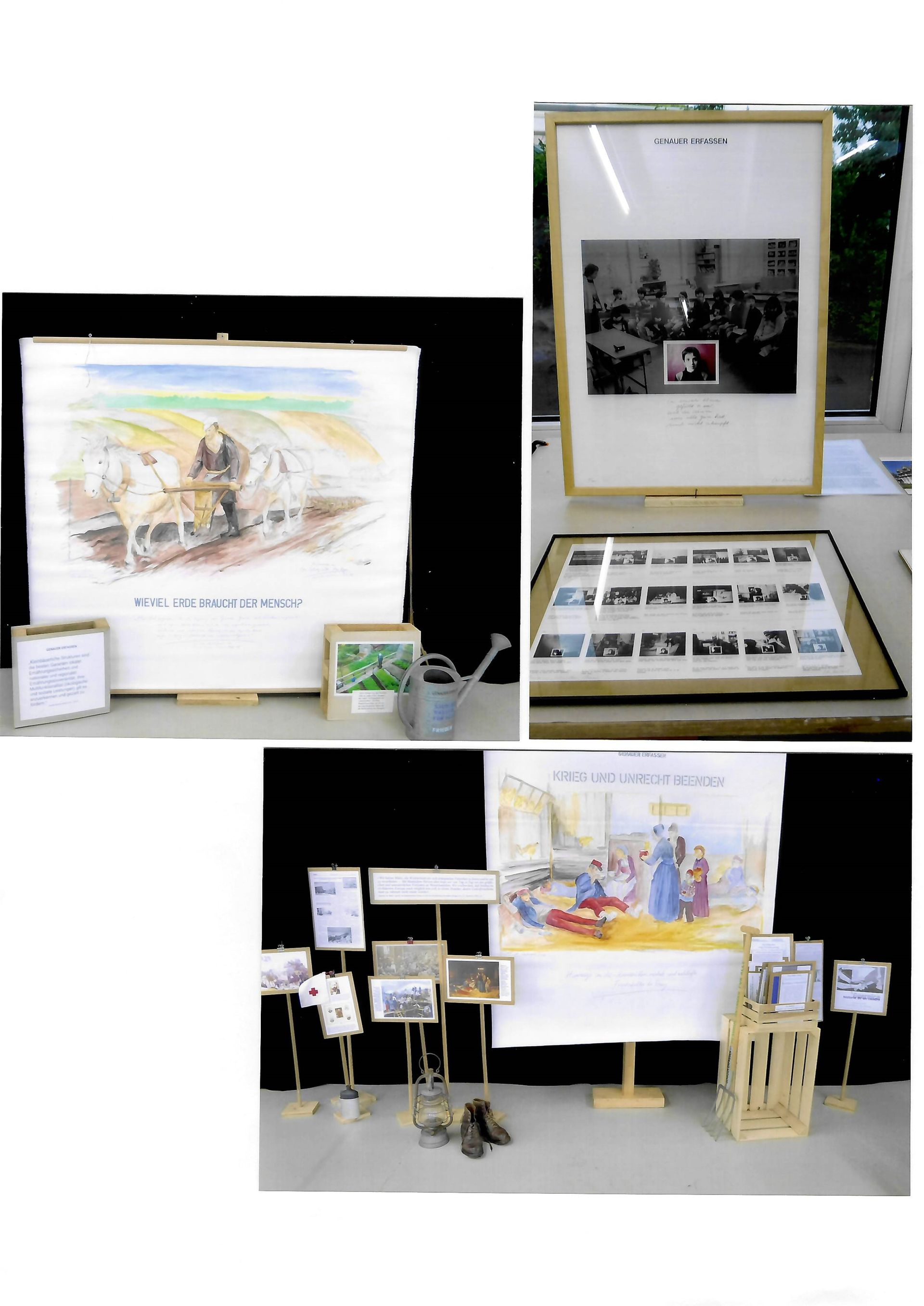 2009 Einzelausstellung in der Kirche Balgrist in Zürich (Offene Kirche für Kultur und Begegnung) GENAUER ERFASSEN: „Ein Haus des Friedens – eine Welt ohne Hunger und Krieg. Eine Kunstausstellung zeigt mögliche Wege.“ Kleine Retrospektive der letzen Ausstellungen und Arbeiten. Malerei, Fotografie, Text, Objekte, Textbild-Installation auf Kirchenfenster und grosse Installation „Ein Haus des Friedens –eine Welt ohne Hunger und Krieg II“. Rahmenprogramm „Kleine Volkshochschule zum Haus des Friedens“ als Teil der Kunstinstallation mit Abendveranstaltungen mit Film, Vorträgen und Gästen aus der Entwicklungszusammenarbeit (UNO-Weltagarabericht , Jugend-Rot-Kreuz Zürich, Caritas, DEZA und Helvetas)