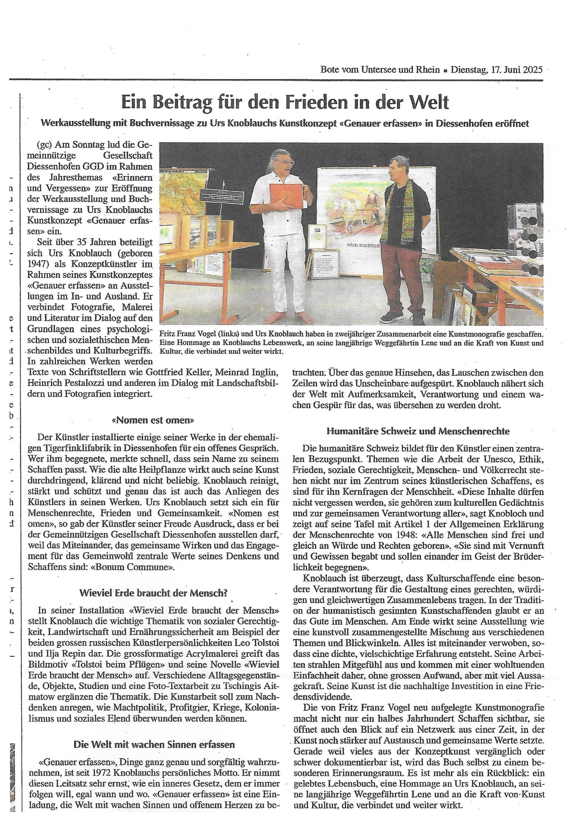 Interview zur Ausstellung in der Thurgauer Zeitung